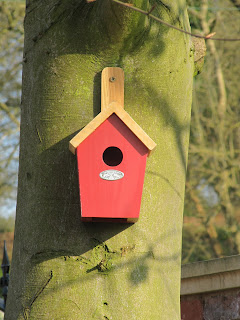 Some brand spanking new bird houses were nailed onto a couple of trees upon our arrival at the Heath back in December. Then a few days ago Poppa Pop (who travels under various guises, such as Our Heavenly Father and David - he lives on the motorway, don't-cha-know!) spotted a pair of blue tits swirling around one of them. And before he knew it, they flew straight inside! It's spring, so you know what that means... honeymoon period. Personally, I wouldn't have plumped for the crib these boobz chose.